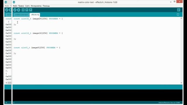 В этом видео поговорим о трех разных способах задания глубины цвета палитры RGB, при которых каждый пиксель может занимать 3, 2 и 1 байт памяти. Для преобразования будем использовать программу LCD Image Converter, которая позволяет подготовить изображение к выводу на светодиодную матрицу. Разберем варианты картинки в формате R8G8B8, где каждый из трех основных цветов (красный, зеленый и синий) занимает по 8 бит (1 байту). Формат R5G6B5 и формат R3G2B3. В конце я продемонстрирую скетч, в котором мы будем преобразовывать 8 и 16 битное представление цвета, в 24 битное и выводить на светодиодную матрицу. Как будет видно, разница практически не заметна. Таким образом, при использовании 8 битного представления цвета, картинка может занимать в 4 раза меньше памяти. Среда разработки - Arduino IDE. Язык программирования - C++. Плата - Arduino UNO. LED-матрица 16х16 адресных светодиодов - http://alii.pub/62nbyn Скетч из видео - https://drive.google.com/file/d/1JmqZuQDTjmLvIG8lWRi__SrgVULKFxhA/view?usp=sharing Файл XML предустановок цвета R3G2B3 для LCD Image Converter https://drive.google.com/file/d/1ykWd_XtYxk-nss8K3TVppOIY6HHmw4iV/view?usp=sharing Картинка 16x16 пикс для теста из видео - https://drive.google.com/file/d/1ER0whTsv5fExLqn9EqnwEoAC2eoaOxXl/view?usp=sharing Ссылка на программу Lcd image converter - https://sourceforge.net/projects/lcd-image-converter/ Видео по работе с программой Lcd image converter - https://youtu.be/XHCOemcbPUE 0:00 Сокращаем размер картинок 1:19 Стандартное RGB представление цвета (3 байта) 1:39 R5G6B5 (2 байта) 2:00 R3G2B3 (1 байт) 2:23 Преобразование в разные цветовые схемы 4:49 Скетч для чтения разных цветовых схем 5:21 Разные цветовые схемы на светодиодной матрице
