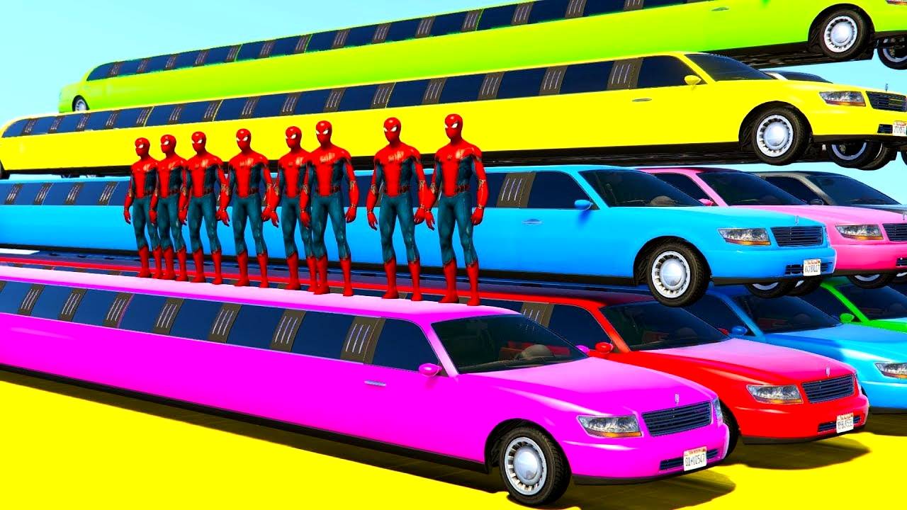 Мультики про Длинные Цветные Машинки и Квадроциклы Человек Паук и Супергерои Мультик для Детей