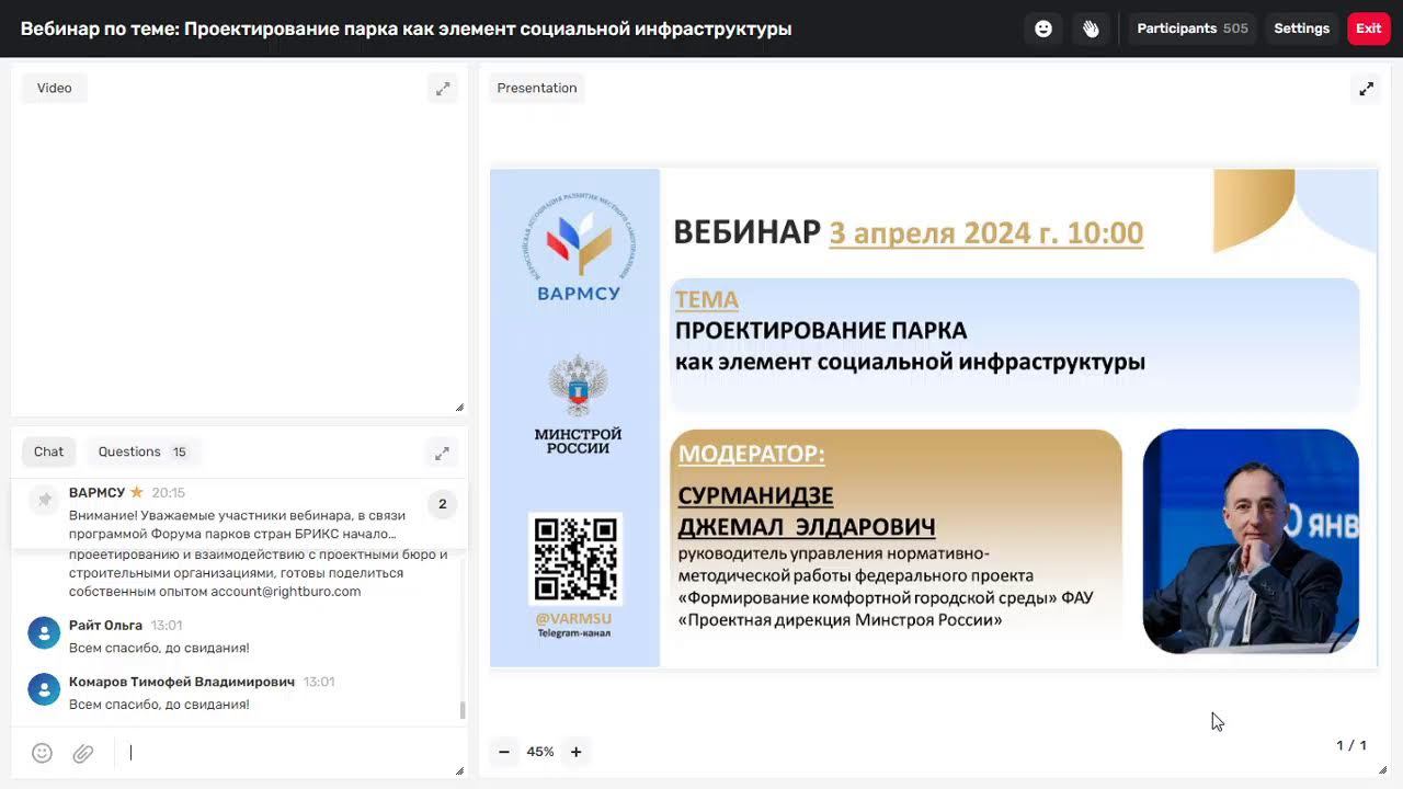 Вебинар ВАРМСУ "Проектирование парка как эд\лемента социальной инфраструктуры"