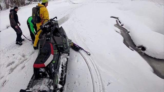 Сезон 23-24. С ютуба. Чуть не утонул снегоход. Покатушки на рваной гусянке.