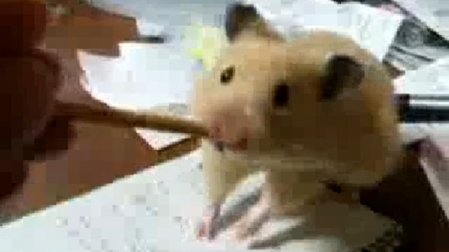 Хомяк грызет карандаш