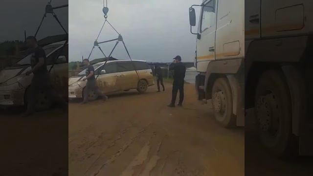 Вот так и переходим речку заказывая манипулятор Мирный-Якутск