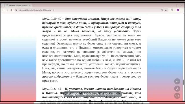 Евангелие Мк.10:32-45Предсказание о смерти и воскресении,просьба сыновей Зеведеевых.Андрей Вдовенко