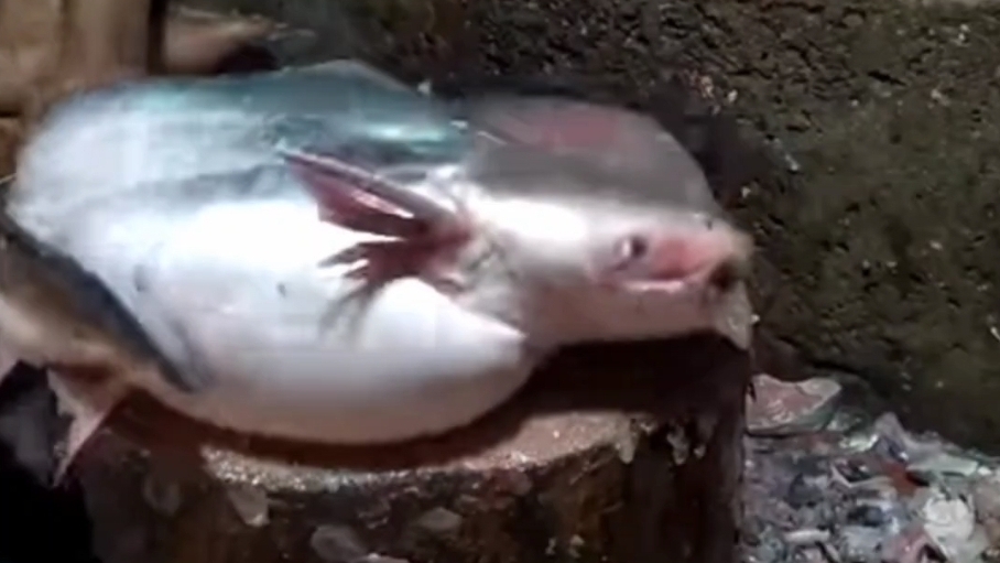 Путешествуя по миру. Быстрая разделка рыбына рынке.