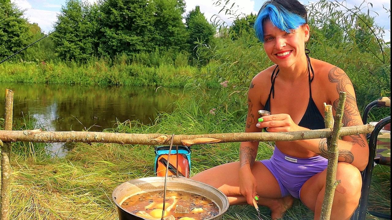Река Вилия, две ночи на ее берегу с донками и фидером. Точка на входе в поворот, глубина до 3 метров. Первая ночь прошла в шатре под дождем с грозой. Утром распогодилось и еще до рассвета я собрала фидер, подготовила корм и приступила к ловле. Моя цель: поймать рыбу и сварить уху на костре. Лещ приплыл и клюнул на фидер, на спиннинг довольно легко поймала щуку, которая стояла в траве под крутым обрывом. Начало было бодрое, но, ближе к середине дня, фидерная точка совсем замолчала и я решила сменить место,переехав с поворота на прогон реки. На новом месте рыба сразу стала проявлять активность, ближе к вечеру поклевок на фидер стало больше. Вторую ночь провела в спальнике под открытым небом прямо у костра без шатра и палатки. На рассвете разбудили солнце и мелкий дождь. Клевать утром начала не только плотва, но и подлещик… Содержание: 00:00 - река Вилия; 01:52 - донки на выползка; 02:56 - быстрый ужин на природе; 06:36 - ночь у костра; 07:53 - утро на рыбалке; 09:32 - мои снасти; 11:29 - рыбалка утром на фидер; 14:40 - лучшее средство от комаров; 15:12 - ловля на фидер; 16:44 - спиннинг на реке; 18:58 - новое место для рыбалки; 20:35 - уха на костре; 25:57 - фидер; 27:13 - купаюсь в реке; 30:07 - вечер у костра; 32:29 - второе утро на рыбалке; 33:34 - клюет на фидер. #уханакостре #рыбалканареке #дикарями