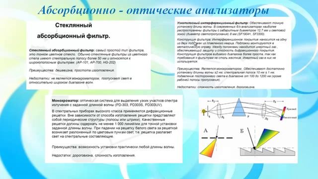 Часть 2. Принцип действия абсорбционно- оптических анализаторов Ключевые слова: анализаторы, оптические анализаторы, абсорбционно оптические анализаторы, светофильтр, монохроматор, спектрофотометр,
