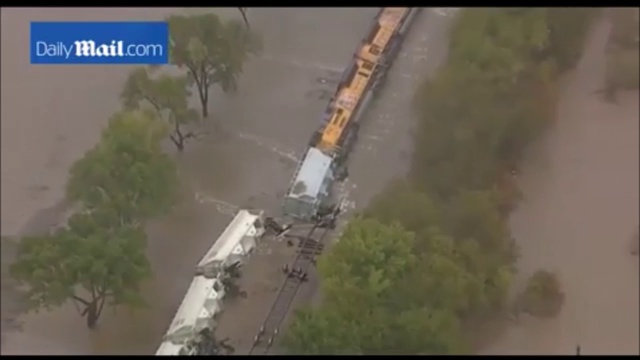 Ураган "Патрисия" 24 октября 2015 года в штате Техас стал причиной сильного наводнения, которое размыло дороги и смыло с рельсов целый грузовой состав.
