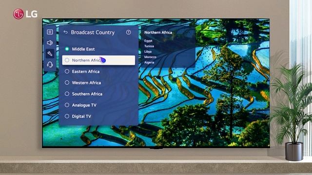 LG WebOS TV allows you to change the broadcast and service country On your remote controller, press the settings button to change the location settings Go to all settings, then general, then system settings Location settings can be found under system settings Choose the broadcast country for selecting a residential region for the broadcast signal The default password is 0,0,0,0 Choose the correct region Tuned programs will be reset, depending on your region For your country's special services, you can select a service country. Service providers may vary by country. The country is automatically set, but if you want to select a specific one, turn off the automatic setting
