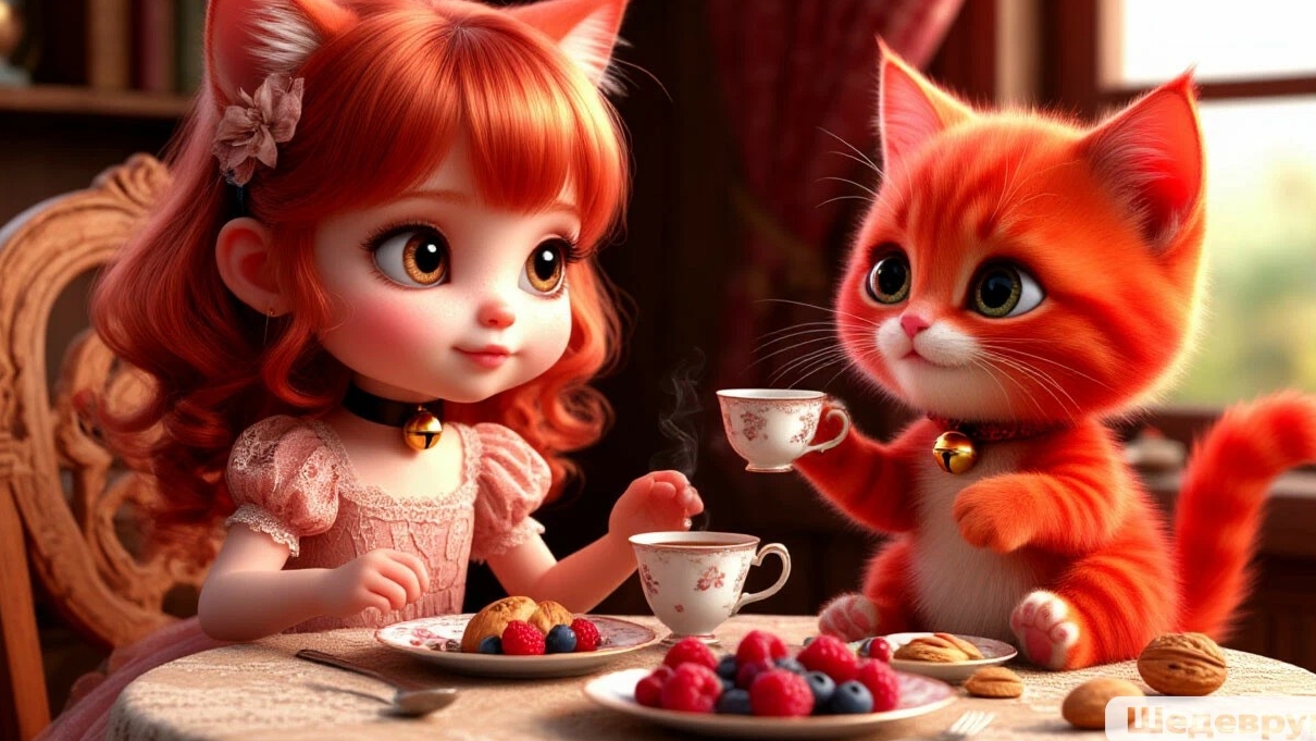 Классное видео о рыжем коте-306 выпуск: Обед котика: девочка-эльфийка и ее гость, рыжий котик