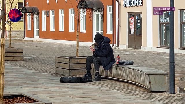 Уличный музыкант. Музыкант в Туле на улице Металлистов поёт и играет на гитаре до слёз смешно. Улица Металлистов. Тула. 19 марта 2024 года.