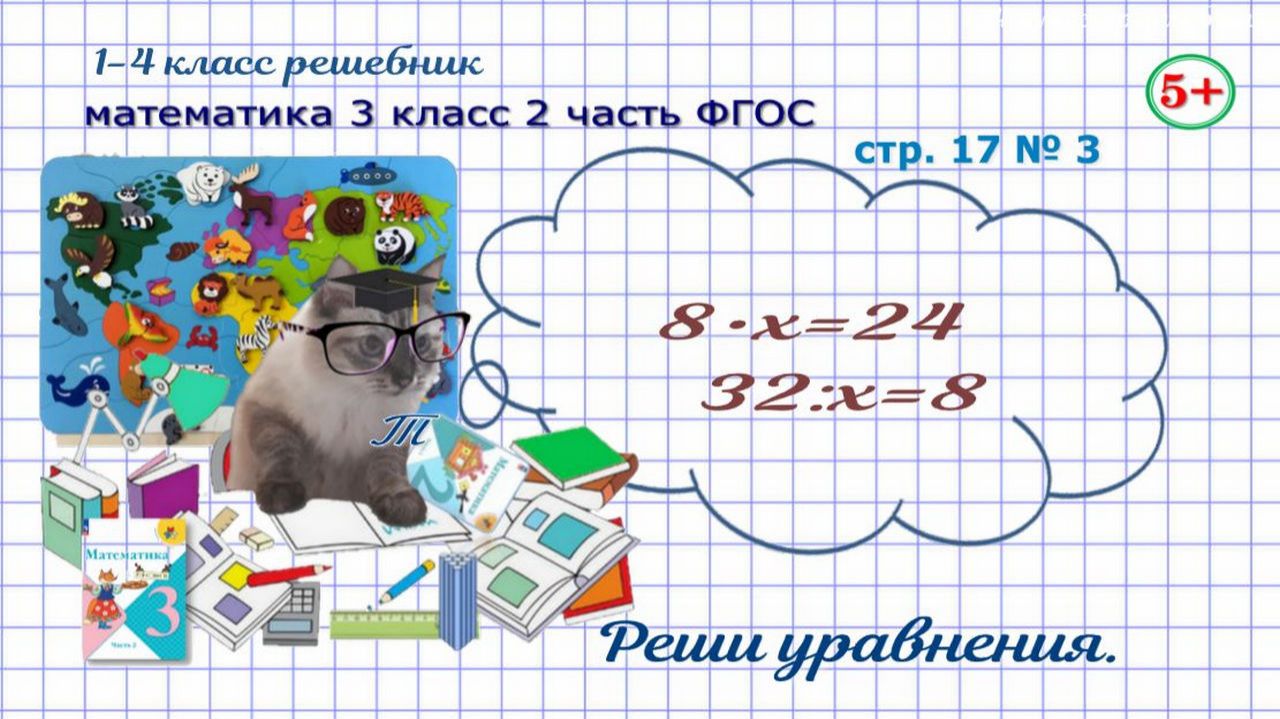 Стр. 17 № 3 математика 3 класс 2 часть ФГОС реши уравнения вида 8•х=24, 32:х=8 гдз