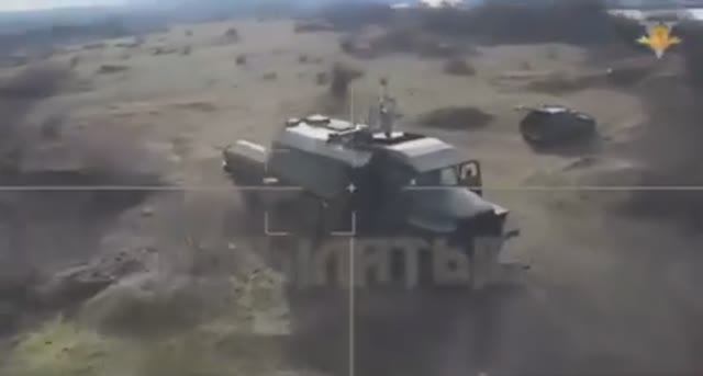Барражирующий боеприпас Ланцет поражает станцию радиоэлектронной борьбы ВСУ.