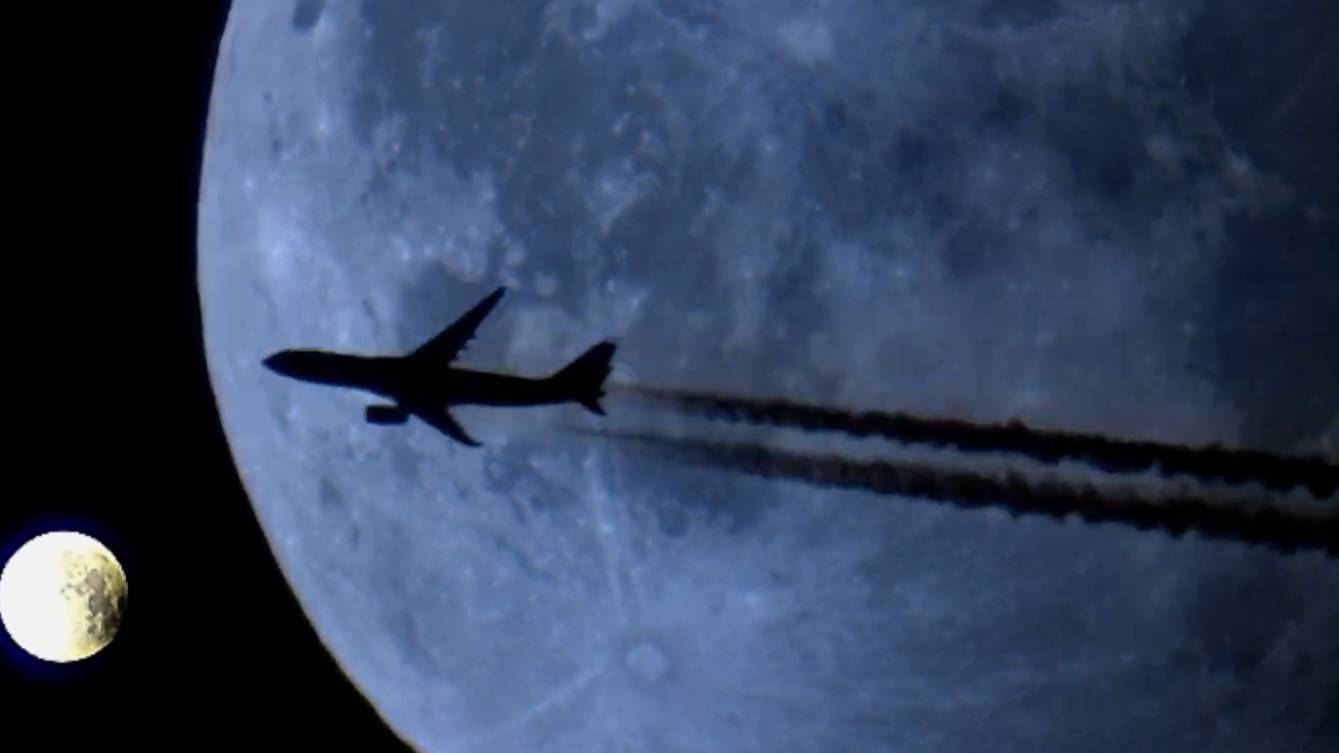 Самолёт на фоне Луны