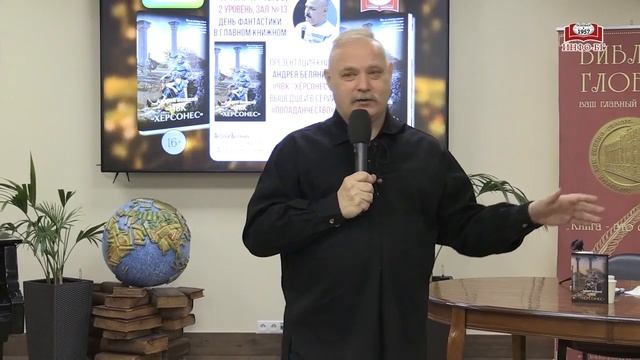 17 марта в «Библио-Глобусе» состоялась презентация книги «ЧВК "Херсонес"» из новой серии «Попаданчество»! Андрей Белянин – наш частый гость, встречи с ним всегда получаются интересными. Заказать книгу можно в нашем интернет-магазине: https://www.bgshop.ru/Catalog/GetFullDescription?id=10909109&type=1 Подписывайтесь на наш Telegram-канал, чтобы быть в курсе всех главных книжных новостей «Библио-Глобуса»: https://t.me/biblioglobus_1 --- «Библио-Глобус» – старейший книжный магазин в самом центре Москвы и один из крупнейших в Европе. У нас вы можете найти книгу на любой вкус из 200 тысяч наименований. Мы предлагаем широкий выбор изданий на более чем тридцати иностранных языках. Ежедневно мы проводим встречи с вашими любимыми авторами и ждём вас на заседаниях наших читательских клубов по интересам. Все права на настоящие аудио-, видеоматериалы защищены и охраняются законом. Использование материалов без согласия ООО Торговый Дом «БИБЛИО-ГЛОБУС» не допускается. Наш сайт: http://www.biblio-globus.ru/ Мы в социальных сетях: VK: https://vk.com/biblioglobus_msk Telegram: https://t.me/biblioglobus_1 Twitter: https://twitter.com/Biblio_Globus С любовью, Ваш Библио-Глобус.