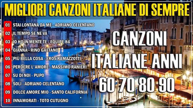 Le più belle canzoni italiane di tutti i tempi - I Migliori Successi Anni '60 '70 '80 [00:00:00] 01 . Stai Lontana Da Me - Adriano Celentano [00:02:20] 02 . Il Tempo Se Ne Va [00:06:00] 03 . Io Ho In Mente Te - Equipe 84 [00:08:20] 04 . Gianna - Rino Gaetano [00:11:42] 05 . Più Bella Cosa - Eros Ramazzotti [00:16:10] 06 . Perdere l'amore - Massimo Ranieri [00:18:45] 07 . Su Di Noi - Pupo [00:22:20] 08 . Soli - Adriano Celentano [00:26:10] 09 . Dolce Amore Mio - Santo California [00:30:00] 10 . Innamorati - Toto Cutugno [00:34:00] 11 . Tornerò - Santo California [00:37:10] 12 . Avrai - Claudio Baglioni [00:42:25] 13 . Senza Una Donna - Zucchero [00:46:50] 14 . Spiaggie (1983) - Renato Zero [00:51:10] 15 . Io Vagabondo - Nomadi [00:55:00] 16 . Serenata - Toto Cutugno [00:58:50] 17 . Maledetta Primavera - Loretta Goggi [01:02:45] 18 . La Cura - Franco Battiatoa [01:07:00] 19 . E tu - Claudio Baglioni [01:09:05] 20 . Crescerai - Nomadi [01:12:20] 21 . Tu Sei L'unica Donna Per Me - Alan Sorrenti [01:15:55] 22 . Time To Say Goodbye [01:20:00] 23 . Pregherò - Adriano Celentano [01:23:30] 24 . Una carezza in un pugno [01:26:50] 25 . Questo Piccolo Grande Amore - Claudio Baglioni [01:31:40] 26 . Celeste nostalgia [01:35:50] 27 . Amandoti - Gianna Nannini [01:39:35] 28 . L'emozione Non Ha Voce [01:44:00] 29 . L'angelo Azzurro - Umberto Balsamo [01:47:10] 30 . Ti Amo - Umberto Tozzi Amiamo davvero questa musica e vogliamo condividerla con tutti. Seguili per goderti la musica: ▶ Ho realizzato questo video solo per amore e passione, voglio condividerlo con tutti per godermi queste meravigliose canzoni. ▶ Non ho alcuna proprietà in questo video. In caso di controversia sul copyright, avvisami tramite posta di seguito. ▶Buonagiornata e un grosso grazie a tutti #MiglioriCanzoniitalianedisempre #canzoniitaliane #musicaitaliana #ilmegliodellamusicaitaliana #Lepiùbellecanzoniitalianedisempre #canzoniitalianeanni80s #canzoniitalianeanni90s #MusicaItalianaanni708090 #CanzoniItalianeanni708090 #musicaItalianaanni80 #musicaItaliana anni70 #musicaItalianaanni90 #canzoniitalianeanni70s #Thebestitalian songs #Canzonid’amoreItaliane #ItalienischeMusik #musicaitaliana #canzoniitaliane #italianmusic #italiansongs #italienischemusik #canzoniitalianeanni607080 #italiansong #bestitaliansongs #musicaanni80 #canzonidamore #musicaromantica #canzoniromantiche #musicaanni90 #musicaanni70 #canzoniitalianeanni70 #canzoniitalianeanni80s #canzoniitalianeanni70s #canzoni #anni60 #anni70 #anni80 #canzonianni70