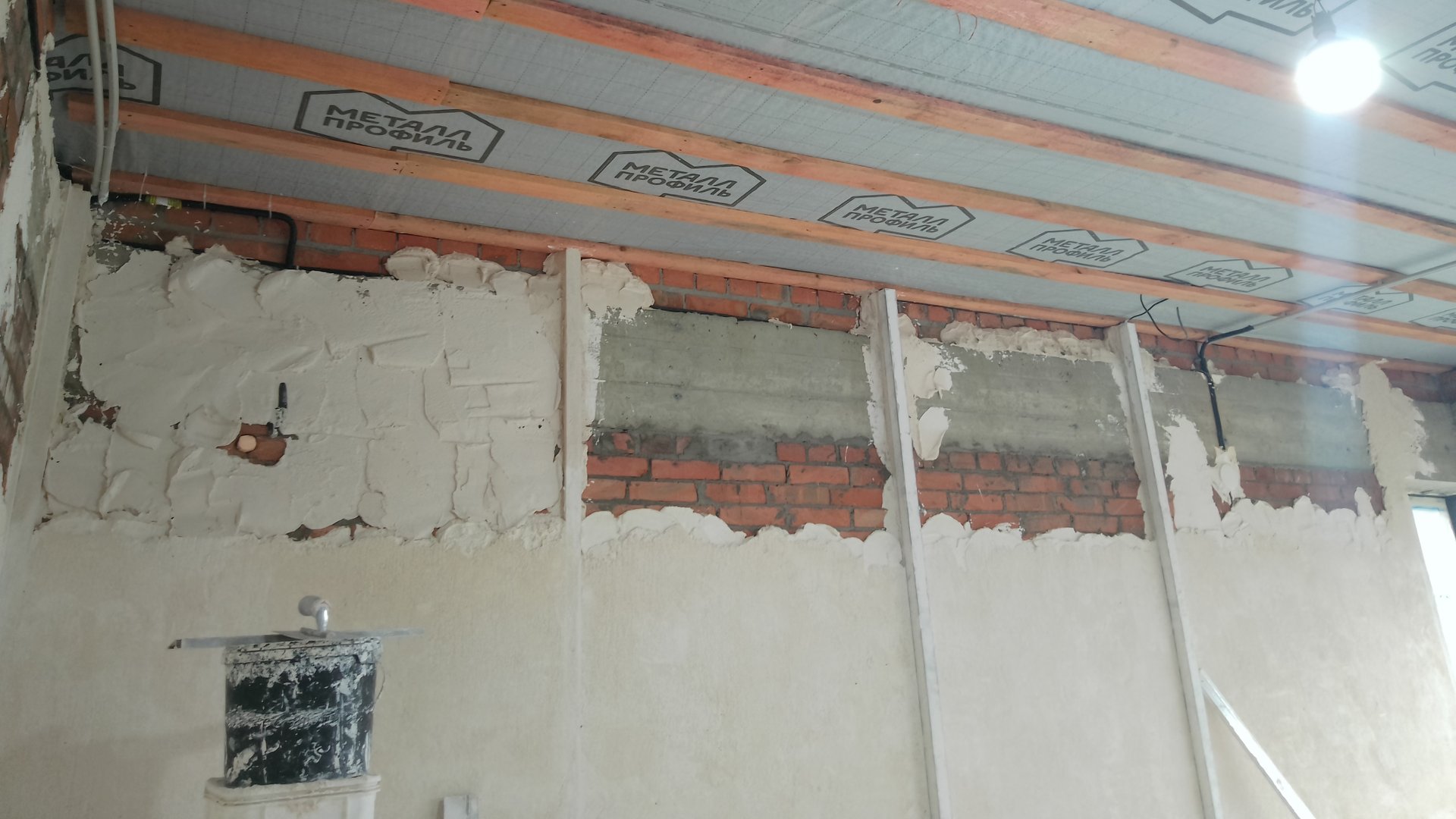 Установка растворных маяков. Удлинение маяков из гипсового раствора. Маяки любой длины.