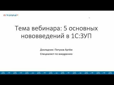 Запись вебинара от 23 июля 2020 года на тему "5 основных нововведений в «1С:Зарплата и управление персоналом 8»". В программе вебинара: 00:01:15 - Электронные трудовые книжки. 00:07:40 - Оплачиваемые нерабочие дни. 00:11:00 - Изменение процедуры ввода больничного во время отпуска. 00:15:40 - Новые коды в ведомостях на выплату зарплаты. 00:19:45 - Вид тарифа страховых взносов для отраслей пострадавших от коронавирусной инфекции.