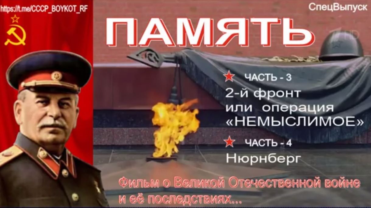 🔴 ФИЛЬМ "ПАМЯТЬ". 3 и 4 части https://youtu.be/G-7OiLeEva0 🎯 3-я ЧАСТЬ - 2-й фронт или операция "НЕМЫСЛИМОЕ" 🎯 4-я ЧАСТЬ - Нюрнберг 👇Ссылка на 1 и 2 части фильма "ПАМЯТЬ" : https://youtu.be/DZZBXZC-Jwg https://t.me/+iZXhI2FrTo81YjUy