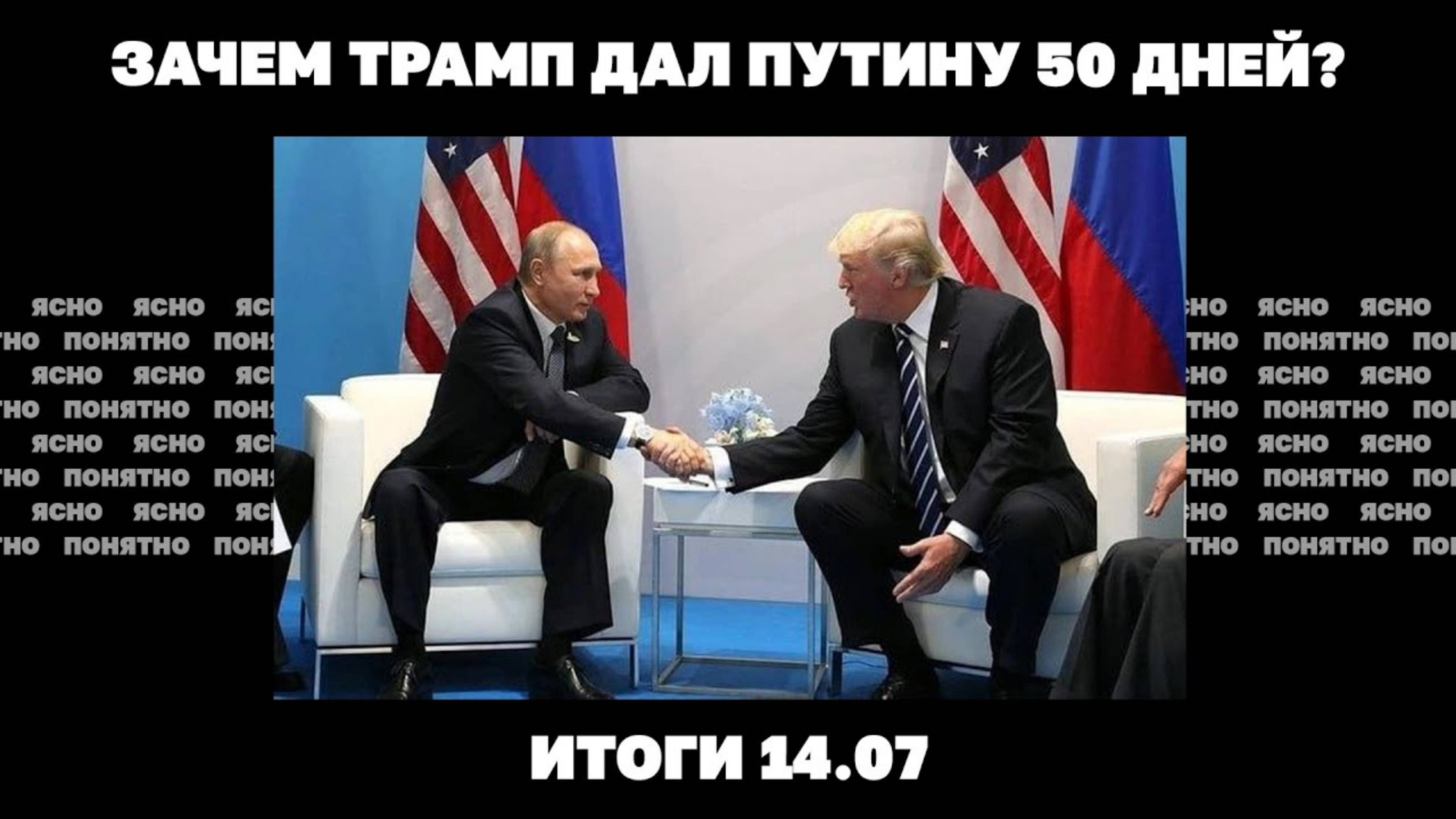 Зачем Трамп дал Путину 50 дней, почему США давят на ЕС, Зеленский меняет премьера. Итоги 14.07