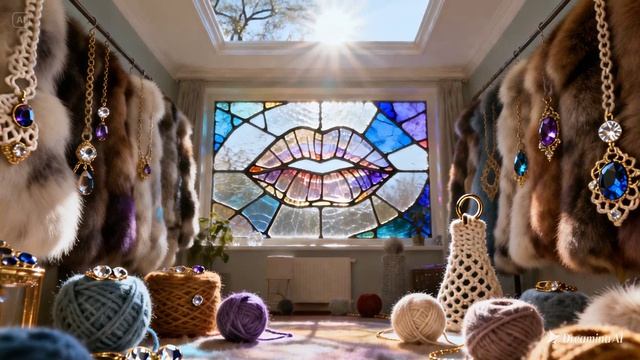 dreamina-2026-02-07-9205-полупрозрачные витражные губы в центре м...