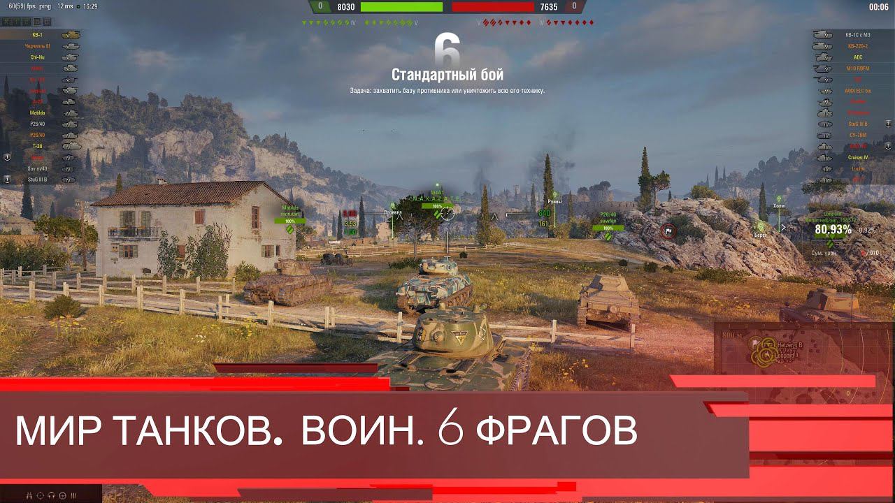 МИР ТАНКОВ. Воин. 6 фрагов. 06 07 24