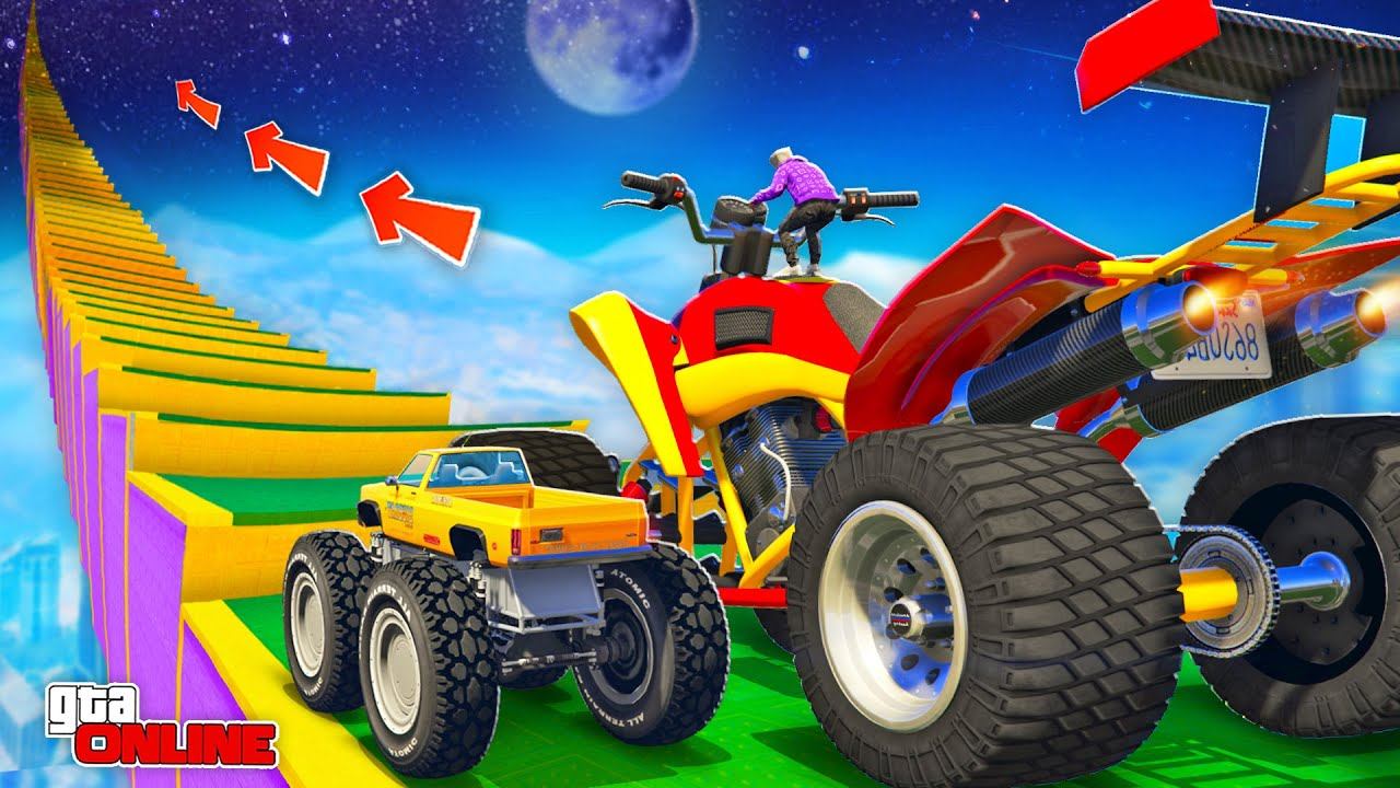 КАК ДАЛЕКО ГИГАНТСКИЙ КВАДРОЦИКЛ СМОЖЕТ ЗАБРАТЬСЯ ПО СТУПЕНЬКАМ ЛЕСТНИЦЫ? ЭКСПЕРИМЕНТЫ ГТА 5