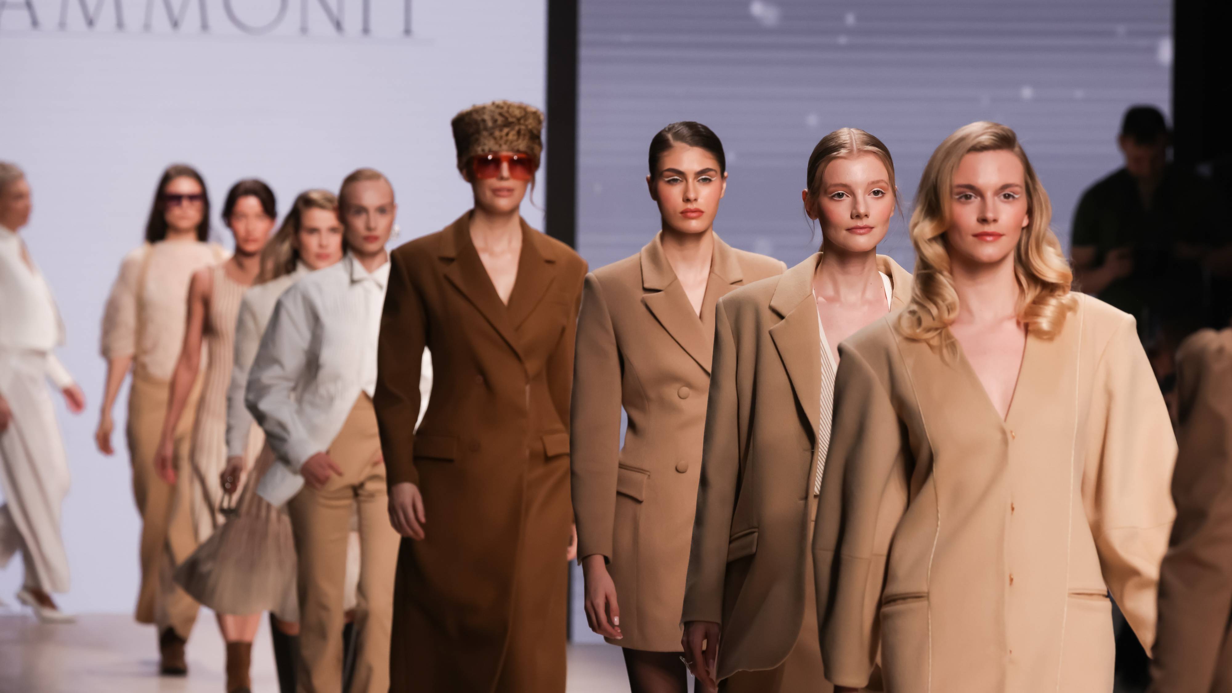 Максимально женственную и элегантную коллекцию продемонстрировал премиальный московский бренд Ammonit, философия которого отражается в рифме безупречного качества и роскоши. При этом, можно сказать, что девиз бренда — красота в простоте. Это проявляется в прямых и приталенных силуэтах, природных оттенках, как песочный, черный янтарь, жемчужный, древесный, периодически перекликающихся с насыщенным алым. Ammonit создает одежду для женщин, которые ценят комфорт и изящность, поэтому в коллекцию вошли и джоггеры-карго из трикотажа в сочетании с расслабленным верхом. Юбки-карандаши, свитеры средней вязки с милыми воротничками, монохромные костюмы в меру свободного кроя, струящиеся платья и меховые изделия в виде трендовой шапки-таблетки, боа и, конечно же, накидки и шубы — все это стало основой бренда Юлии Даниловой.