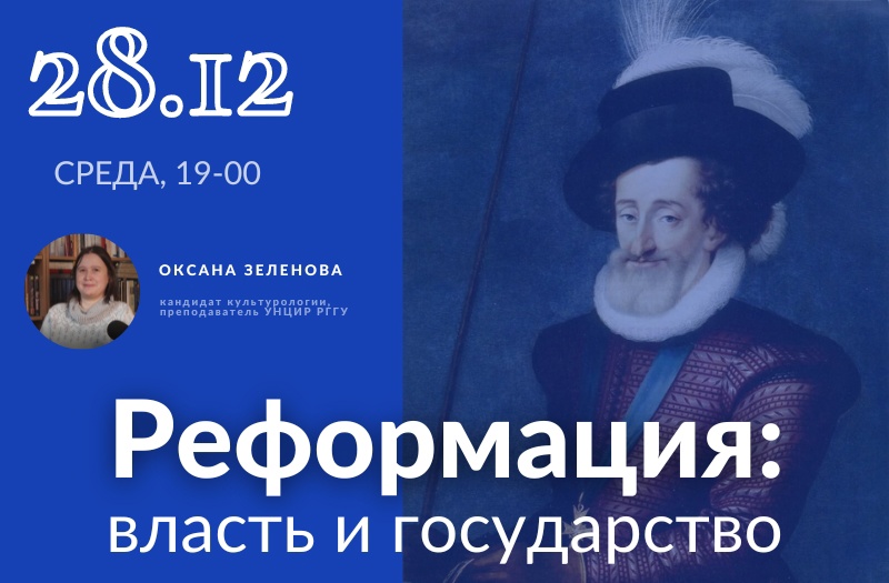 Лекция Оксаны Зеленовой, к. культурологии, доц. УНЦИР РГГУ, о Реформации в рамках цикла «Как Реформация изменила жизнь европейского человека» На лекции Оксаны Владимировны "Реформация: власть и государство" мы ответим на следующие вопросы: Как Крестьянская война в Германии породила общеимперский Уголовный кодекс, а Нидерландская революция - идею измены Родине, а не королю? Как протестантам виделся идеальный монарх, и почему на эту роль лучше всего годился религиозно индифферентный ловелас Генрих IV? Как связаны классический либерализм и протестантизм?