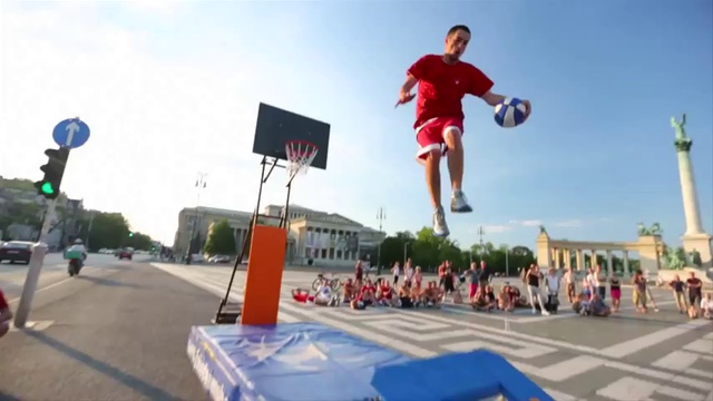 В реальном баскетболе игроки иногда тоже показывают чудеса акробатики. Но участники театра Face Team Acrobatic Sports превратили баскетбол в представление высшего уровня. Венгерские акробаты из команды Face Team продемонстрировали свое умение выполнять слэм-данки, которые были сняты под безумными углами. Съемки проходили в Будапеште.