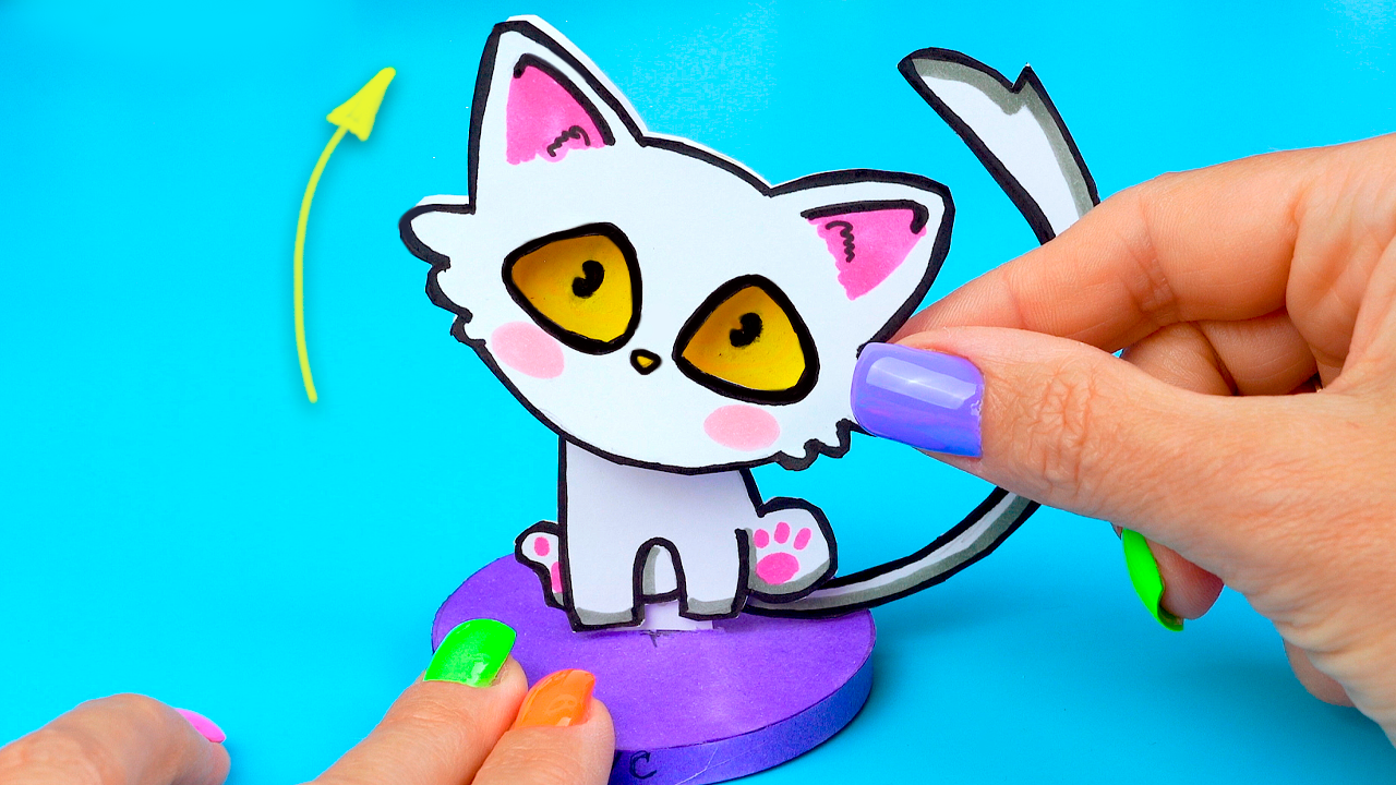 Милый Котик из бумаги, своими руками. Прекрасная поделка, которая украсит твой рабочий стол. А подружки и друзья будут удивлены ее функциями. 00:00 милый котик из бумаги 00:18 детали для котика 00:36 собираем голову кота 01:25 деталь для вращающего механизма 02:31 подставка для котика 03:07 собираем подставку для котика 03:41 собираем хвост кота