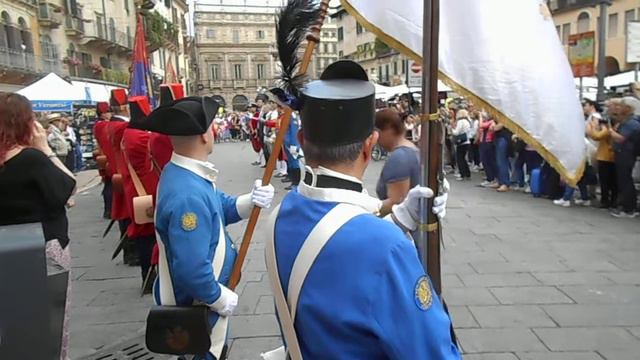 Pasque Veronesi a Verona in Piazza Erbe schieramento dei Reggimenti per il 221° Anniversario