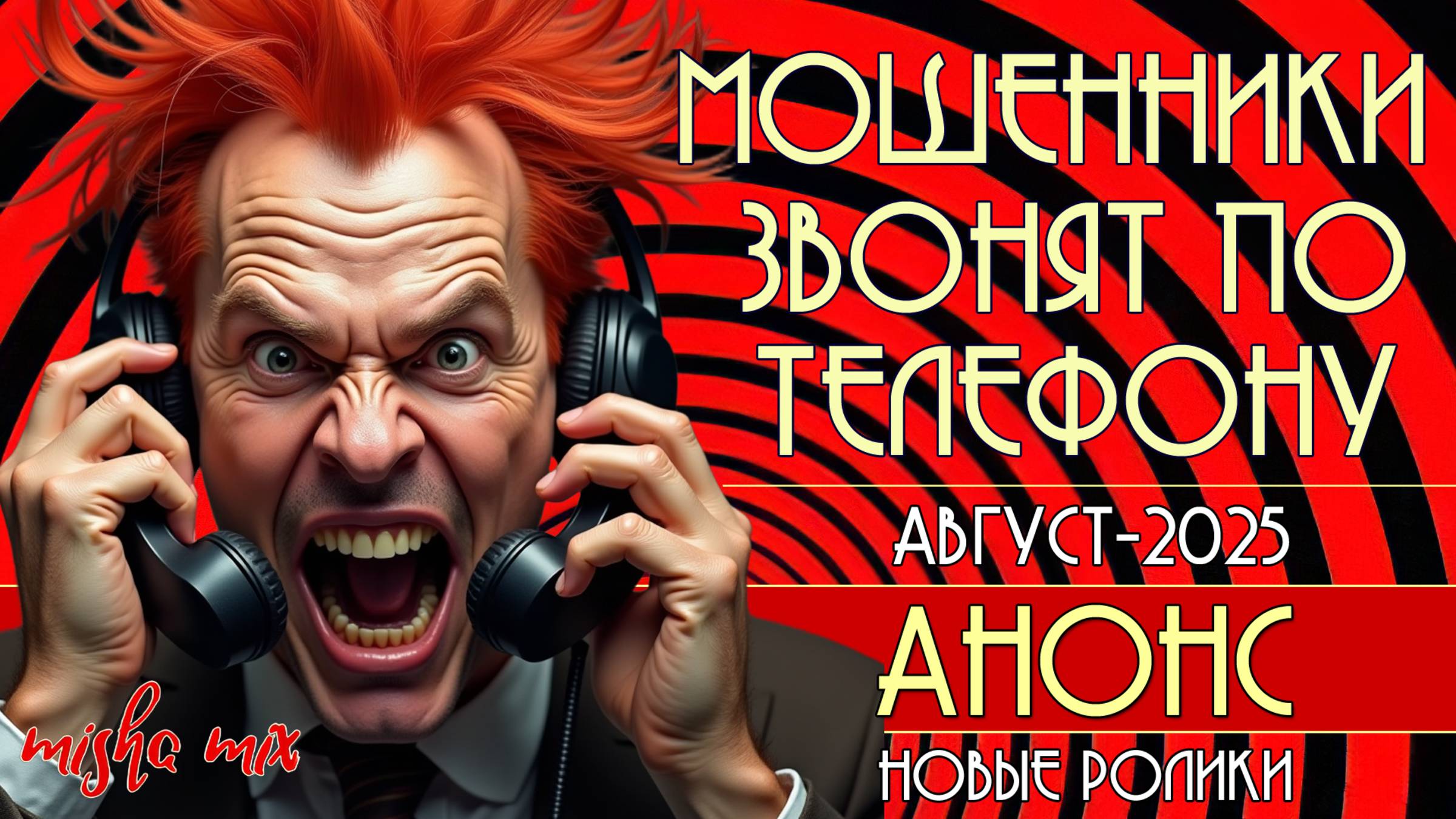 Анонс выхода новых роликов с троллингом телефонных мошенников в августе: 04.08 - Так не бывает (только на ЮТУБ) 09.08 - Мы звонилки-аферисты 15.08 - Бибигуль 22.08 - Пошлю его на... 29.08 - Лето Лето 01.08 - 5-й сборник песен о мошенниках ТОП-10 Мой Ютуб-канал, где можно найти больше роликов: www.youtube.com/@MishaMixCanal Подпишитесь на канал, чтобы не пропустить интересные ролики и быть в курсе схем разводов мошенников, ведь это касается каждого! Тех, кому нравятся песни в моих роликах про телефонных мошенников, приглашаю подписаться на мой новый музыкальный канал в Телеграмм, где периодически публикуются песни для скачивания, через некоторое время после выхода роликов о мошенниках. Найти канал можно по поиску: @mishamixmusic, скачивать аудио-файлы можно бесплатно. Поддержать канал можно здесь: Ю.money: 4100112108007608
