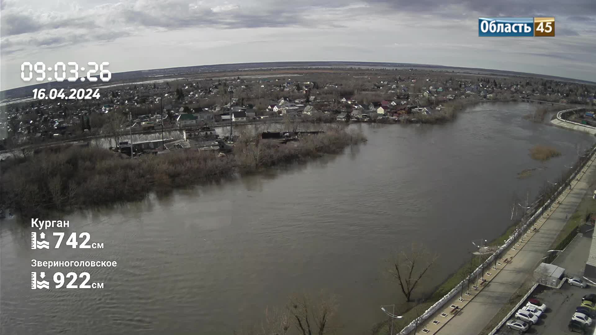 Паводок 2024 Курган. Вид на кировский мост.