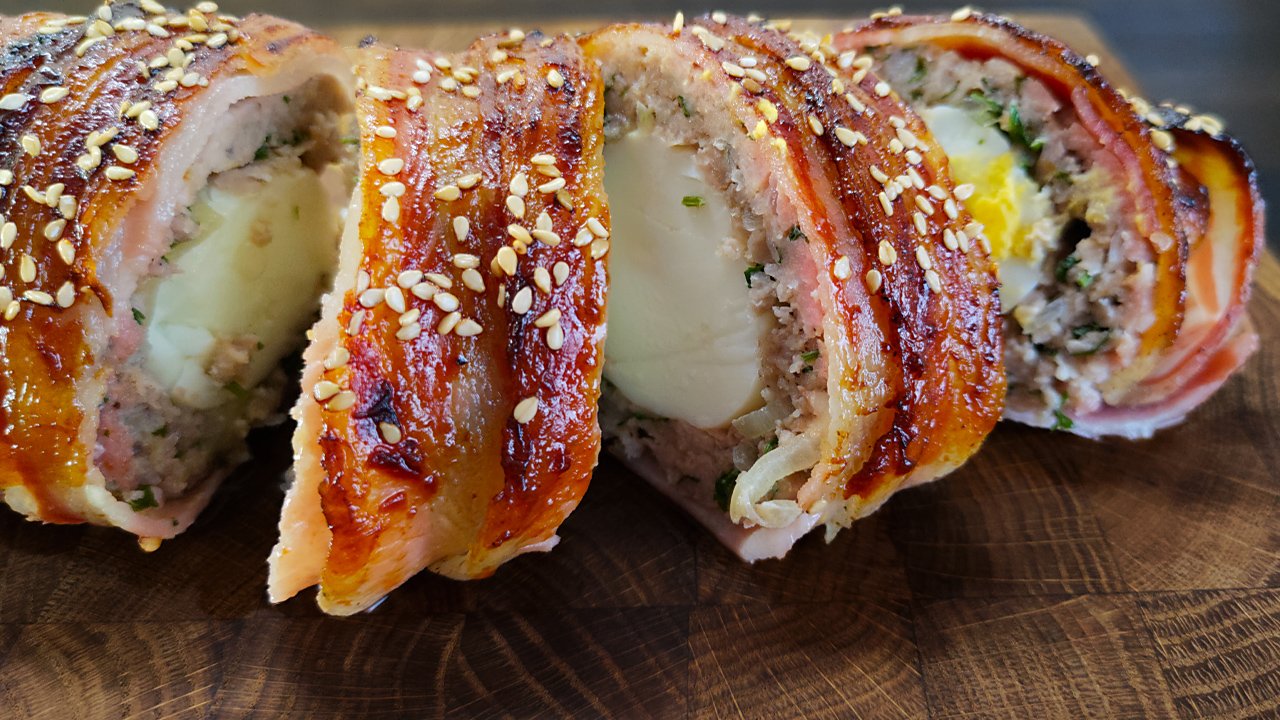 Рецепт для праздничного ужина! Все учтено: быстро, красиво, сочно и вкусно! #мяснойрулет #рецептмясногорулета #свинойрулетвдуховке Лайк, подписка - от меня приятного аппетита! Ингредиенты: Свиной фарш 400 гр. Бекон сырокопченый 200 гр. Куриное яйцо 4 шт. Репчатый лук 1/2 Петрушка 40 гр. Барбекю соус 1 ст. л. Соль по вкусу Перец по вкусу Семена кунжута по вкусу #рецептмясногорулета #мяснойрулет #мяснойрулетвдуховке #какприготовитьмяснойрулет #рулетвдуховке #свинойрулетвдуховке #рулетизсвиногофаршавдуховке #мяснойрулетвфольгевдуховке #мяснойрулетсначинкойвдуховке #мясовдуховке #мяснойрулетизфарша #рулетизфарша #рулетизсвинины #мяснойрулетвдуховкерецепт #мяснойрулетсяйцом #вкусныймяснойрулет #рулетнапраздничныйстол #запеченныймяснойрулет #рулетмясной #вкусный рулет