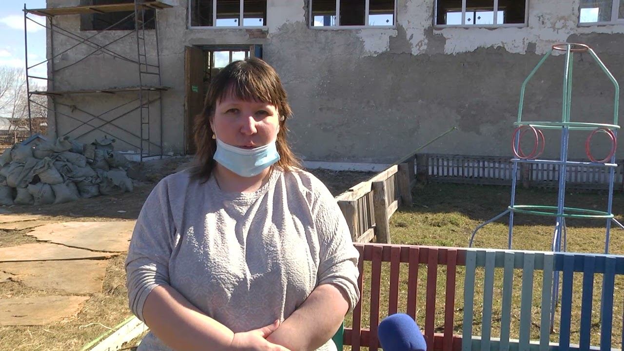 Ремонтные работы идут полным ходом. На момент нашего приезда в понедельник 19 апреля закончен ремонт кровли, рабочие меняют оконные блоки. От старого спортзала остались лишь стены, в прямом смысле этого слова: проведен демонтаж пола, снята обшивка стен, убраны деревянные окна. Рядом со школой, на огороженном участке о старом спортивном зале теперь лишь напоминает гора мусора, старые деревянные доски.