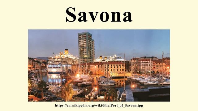 If you find our videos helpful you can support us by buying something from amazon. https://www.amazon.com/?tag=wiki-audio-20 Savona =======Image-Copyright-Info======== License: Creative Commons Attribution-Share Alike 4.0 (CC BY-SA 4.0) LicenseLink: http://creativecommons.org/licenses/by-sa/4.0 Author-Info: Jonathanpellicano Image Source: https://en.wikipedia.org/wiki/File:Port_of_Savona.jpg =======Image-Copyright-Info======== ☆Video is targeted to blind users Attribution: Article text available under CC-BY-SA image source in video