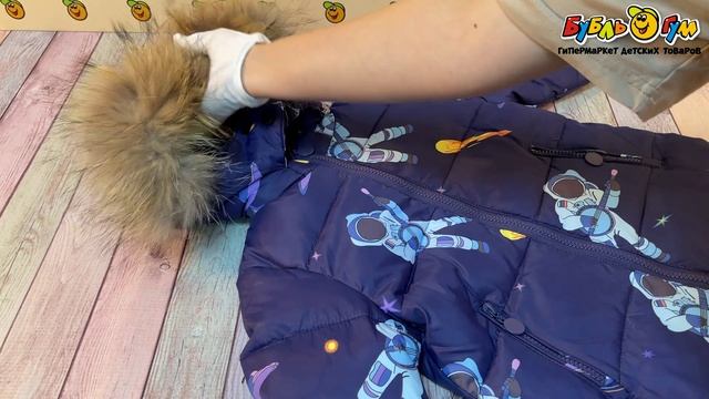 330704 Комплект зимний куртка с меховой опушкой и полукомбинезон с бретелями темно-синий