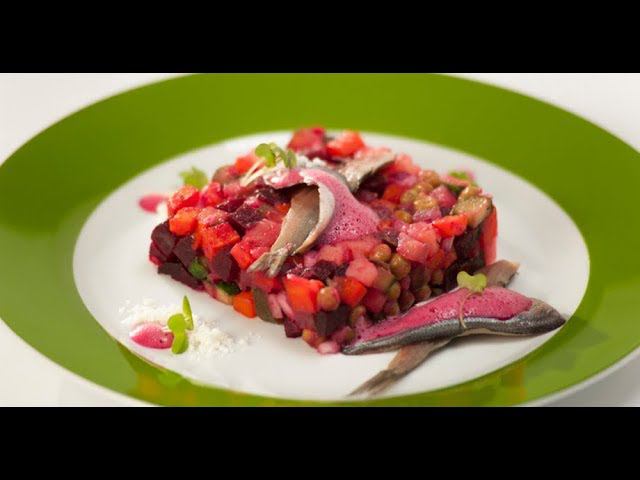 Винегрет с оливковым песком и свекольной пеной | Маргарита и мастера
