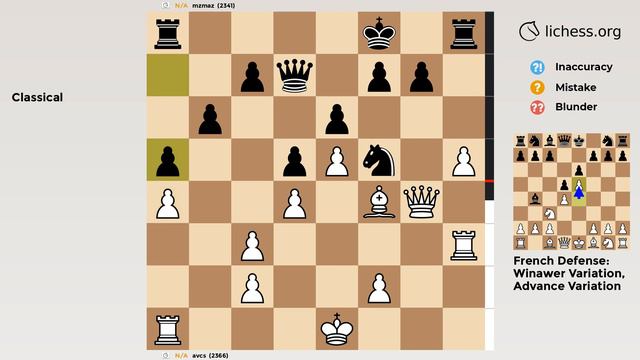 French Defense: Winawer Variation, Advance Variation | Chess Game