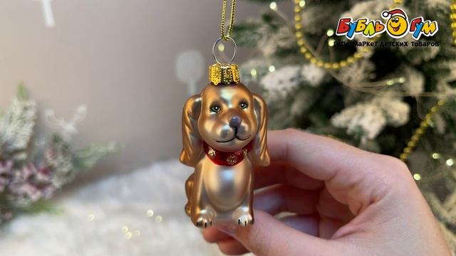 331567 Елочное украшение Собачка стекло 7см