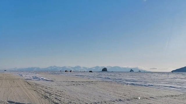 На авто по льду по бухте в Магадане. Рыбалка на льду в Магадане.