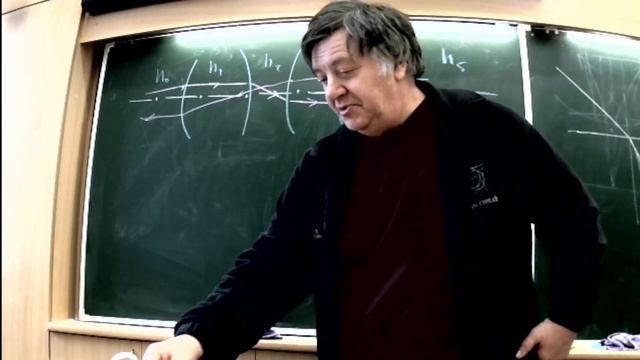ЭСММИО SW-university.com- открытая и бесплатная Электронная Система Массового Многоуровневого Индивидуализированного Обучения физике и точным наукам (информация предоставляется каждому на уровне его интересов и возможностей с ИИ сопровождением поиска ресурсов) ЧК МИФ ------- Чирцов: Курс Многоуровневый Интерактивной Физики для учащихся Физ-Мат-Лицеев (читается в ФМЛ-30) Раздел - 4 Оптика Тема - 2. Геометрическая оптика Лекция -- 2 ЦЙентрированнеы оптические системы Вопрос - 1 .ЦЕНТРИРОВАННЫЕ ОПТИЧЕСКИЕ СИСТЕМЫ: ОПРЕДЕЛЕНИЯ Длительность: 0 : 15 : 14: Водятся понятие центрированной оптической системы как совокупности однородных оптических промежутков, разделенных сферическими отражающими и преломляющими поверхностями, центры которых лежат на одной прямой, называемой оптической общей системы. Водятся понятие гомоцентрического пучка лучей, как совокупность лучей, исходящих из одной точки. Водится понятие профессиональных лучей и профессионального приближения, используемого при расчетах центрированных систем. В качестве экспериментального факта утверждается, что в профессиональном приближении оптическая система преобразует гомоцентрический пучок в гомоцентрический пучок, который оказывается либо расходящимся, либо сходящимся.