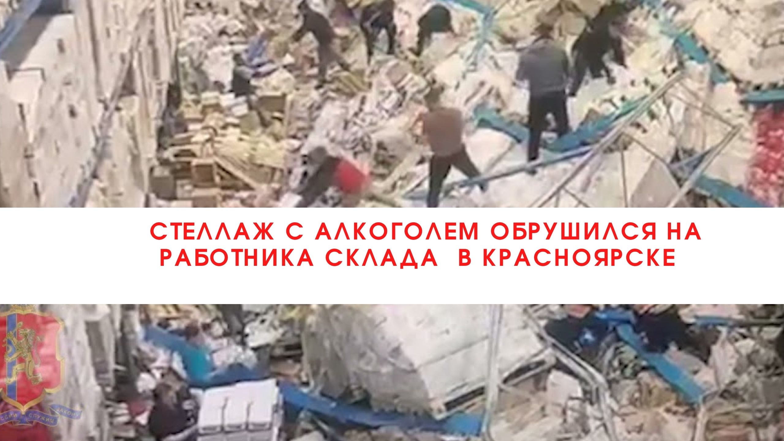 Стеллаж с алкоголем обрушился на работника склада алкоголя в Красноярске///