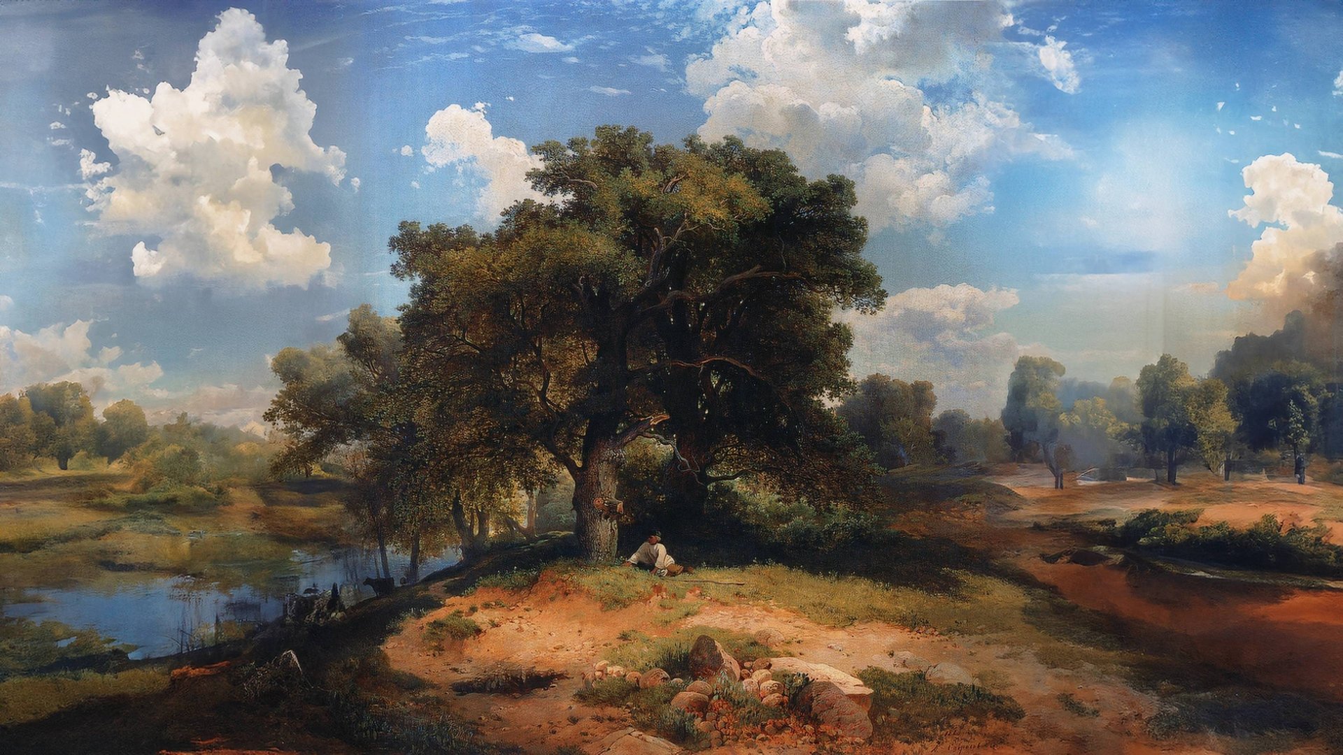 Добро пожаловать в увлекательное путешествие по миру картин Алексея Саврасова! В этом видео мы представим вам реальные репродукции четырех его знаменитых полотен с дубами, а также фантазии, созданные с помощью искусственного интеллекта, максимально приближенные к стилю великого мастера. Вы увидите, как художник делает эскизы и пишет картины с натуры, где главенствует фантазия или природа. Мы сделали несколько генераций изображений, которые на 80-90% соответствуют стилю Саврасова, и были приятно удивлены разнообразием сюжетов и красотой полученных работ. Летний пейзаж с дубами: На картине изображены величественные дубы на опушке леса, освещенные мягким летним солнцем. Небо с парящими облаками и небольшой водоем с отражением деревьев создают атмосферу безмятежности и умиротворения. Цветовая палитра светлая и прозрачная, передающая теплые оттенки зелени и желтизны. Стиль более реалистичный, близкий к оригинальному стилю Саврасова. Летний день. Ивы на берегу реки: На картине изображены деревья, растущие на берегу реки, в летний день. Художник мастерски передает игру света и тени, создавая ощущение глубины и пространства. Картина наполнена светом и теплом, передавая красоту и спокойствие летнего дня. Пейзаж с дорогой: Огромный дуб и кривая береза на берегу небольшого сухого песчаного ручейка. Ранняя осень, темно-зеленая с желтизной листва увядает, пасмурное небо на треть полотна закрыто темными тучами. Картина передает атмосферу спокойствия и умиротворения, создавая ощущение единения с природой. Присоединяйтесь к нам, чтобы насладиться этим волшебным миром, где искусство и технологии сливаются воедино, создавая новые шедевры, вдохновленные творчеством великого русского пейзажиста.