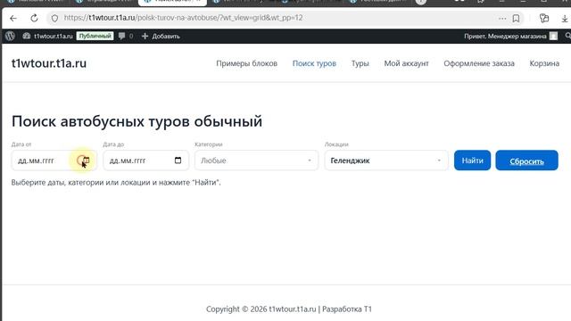 В этом видео показана работа с внешним интерфейсом 1-Tour System: поиск туров, каталог предложений и использование виджетов. Видео предназначено для менеджеров 1-Tour и агентов, которые подбирают туры для клиентов, работают с каталогом и используют виджеты поиска на сайте или партнёрских страницах. Показано, как выглядит система со стороны пользователя и агента, и как корректно работать с турами без доступа к админке.