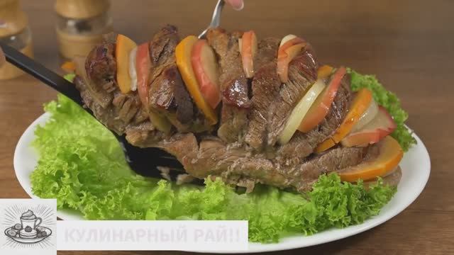 Всем привет! Вы на канале КУЛИНАРНЫЙ РАЙ!!. Сегодня приготовим мясо в духовке. Запекается оно с кусочками яблока, лука и хурмы, а также с пряностями, которые придают ему особенный вкус и аромат. Оно вкусное как горячим, так и в холодном виде. Выглядит такое мясо на праздничном столе очень красиво и аппетитно. Подписывайтесь на мой канал и узнавайте еще больше вкусных и простых рецептов. ✅Ингредиенты: мясо (свиная шея) - 1 кг яблоко - 1/2 шт. хурма - 1/2 шт. лук - 2 шт. мед - 2 ст. л. соль - 1/2 ст. л. паприка сладкая молотая - 2 ч. л. корица молотая - 1 ч. л. перец черный молотый - 1/2 ч. л. масло растительное - для жарки ✅Пошаговый рецепт приготовления: Сначала подготовим все ингредиенты. Берем половину большой хурмы и нарезаем ее полукружочками. Половину большого яблока, очищенного от сердцевины, тоже нарезаем полукружочками. Две луковицы среднего размера нарезаем кружочками. Берем примерно 1 килограмм свинины, я использую шейную часть. Мясо моем и хорошо обсушиваем бумажными полотенцами. Мясо кладем на хорошо разогретую сковороду с растительным маслом. Обжариваем на большом огне с каждой стороны примерно по 1−2 минуты до красивой румяной корочки. Именно эта корочка придает мясу аромат, красивый вид и сохранит соки. Чтобы масло, на котором обжаривается мясо, сильно не разбрызгивалось, прикрываем сковороду крышкой, но не полностью. Готовое мясо снимаем с огня. Готовим соус для мяса. В мисочку насыпаем пол столовой ложки соли, одну чайную ложку молотой корицы, 2 чайных ложки молотой сладкой паприки и 2 столовые ложки мёда. Я мёд немного растопила в микроволновке, чтобы он стал жидким. Сюда же добавляем примерно пол чайной ложки черного молотого перца. Все перемешиваем. На обжаренном мясе делаем надрезы, но не прорезая его полностью. Приготовленной смесью равномерно смазываем мясо в надрезах сверху и снизу. В каждый надрез вставляем по пластинке яблоко, лука и Так начиняем все надрезы в мясе. Начиненное мясо переставляем на противень с постеленный фольгой. Мясо аккуратно заворачиваем в фольгу так, чтобы жидкость, которая будет выделяться с мяса, не выливалась на противень. Все ставим в духовку разогретую до 180 градусов. Килограммовый кусок мяса запекаем примерно 60 минут. Мясо запеклось, вынимаем его из духовки и раскрываем фольгу. Будьте осторожны, не обожгитесь с паром. Готовое мясо перекладываем на блюдо, украшенное листьями салата и подаем на стол. Мясо запеченное с яблоками, луком и хурмой получилось очень вкусным, нежным и ароматным. Оно прекрасно пропиталось приправами с медом и фруктами. Такое мясо смело можно подавать на праздничный стол. Готовиться оно совсем несложно. Если вам понравился такой вариант мясного блюда на праздничный стол, то обязательно ставьте лайк и пишите комментарии. Подписывайтесь на мой канал и нажимайте на колокольчик, чтобы не пропустить новые видео, они выходят каждый день.Готовьте вкусно, готовьте с удовольствием. Спасибо что, смотрите👀 мои видео! ЛУЧШАЯ БЛАГОДАРНОСТЬ – подписка на канал 😍, оценка видео 👍👍👍, репост и комментарий! Буду рад любому донату💲 на корм моему котику Василию 🐱😇🌹 Вам мелочь, а нам приятно.🌹