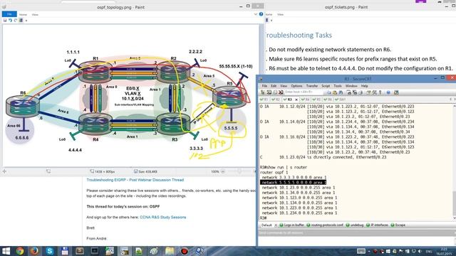 Recording from 2015 This is step-by-step video tutorial explaining how to solve the OSPF Troubleshooting Lab. This lab was designed by Andre Laurent specifically for his webinar session. This is the second video in the troubleshooting series. Post Seminar Discussion Thread: https://learningnetwork.cisco.com/thread/86101 Table of Contents: 2:36 - Ticket 1 2:59 - Ticket 2 27:40 - Ticket 3 38:50 - Ticket 4 43:22 - Ticket 5 1:24:18 - Ticket 6 1:41:24 - Ticket 7