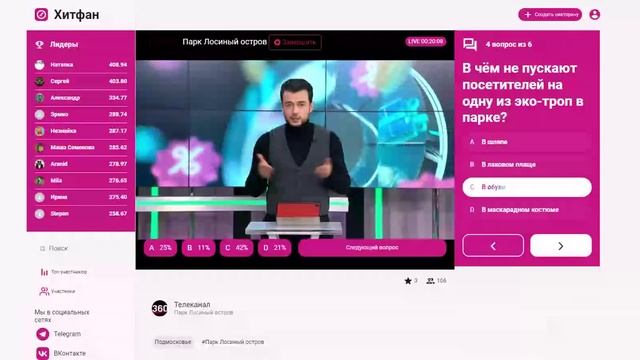 Викторина платформы интерактивных викторин ХитФан и телеканала 360 Подмосковье, посвященная парку Лосиный Остров от 2 ноября