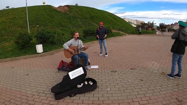Уличный бард и музыкант спел песню для пограничника