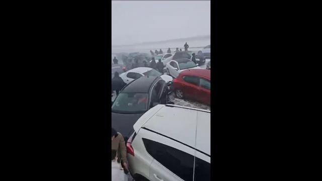 Жуткие кадры: массовое ДТП из-за метели произошло в Казахстане